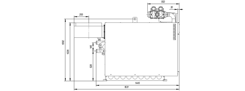 Подключение и монтаж котла в котельной осуществляются согласно проекту. Возможны различные варианты в зависимости от количества котлов в котельной и наличия дополнительного оборудования. Рекомендуемая схема установки газового котла 5000 м² представлена ниже на примере модели «Барс 500».